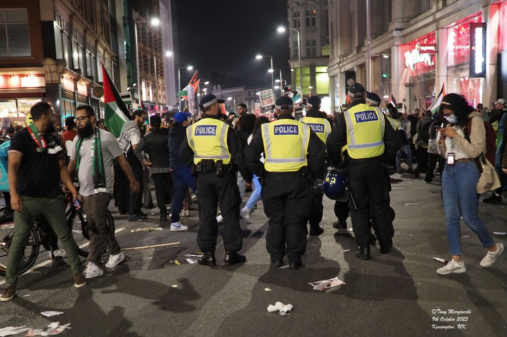 From the river to the sea, Palestine will be free! It was chanted again and again, but, did they know which river and which sea? I doubted that. The police were there, hanging around in small groups, not in any great numbers, for the most part they stood there, doing nothing. Looking at the mob in front of them, unsure, it would appear, of their position.